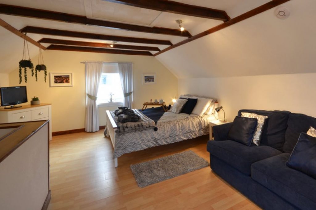 Seaspray Cottage has been freshly refurbished and provides a beautiful location for a couple or small family to enjoy a seaside break. This traditional cottage has been tastefully decorated in a modern cottage style and provides all the facilities and home comforts you could ask for. Downstairs, the spacious dining area and beautiful lounge provide a perfect relaxing space. French doors give access to an area outside perfect for your morning coffee or a glass of wine in the evening. The fully equipped kitchen leads to a modern shower room. Upstairs is a very large bright bedroom and living space with king size bed and additional double sofa bed. The linens and décor are of the highest quality and two large windows provide a light and airy feel. The colourful harbour is located at the end of the street with a beautiful secluded beach just 5 minutes walk from the front door.